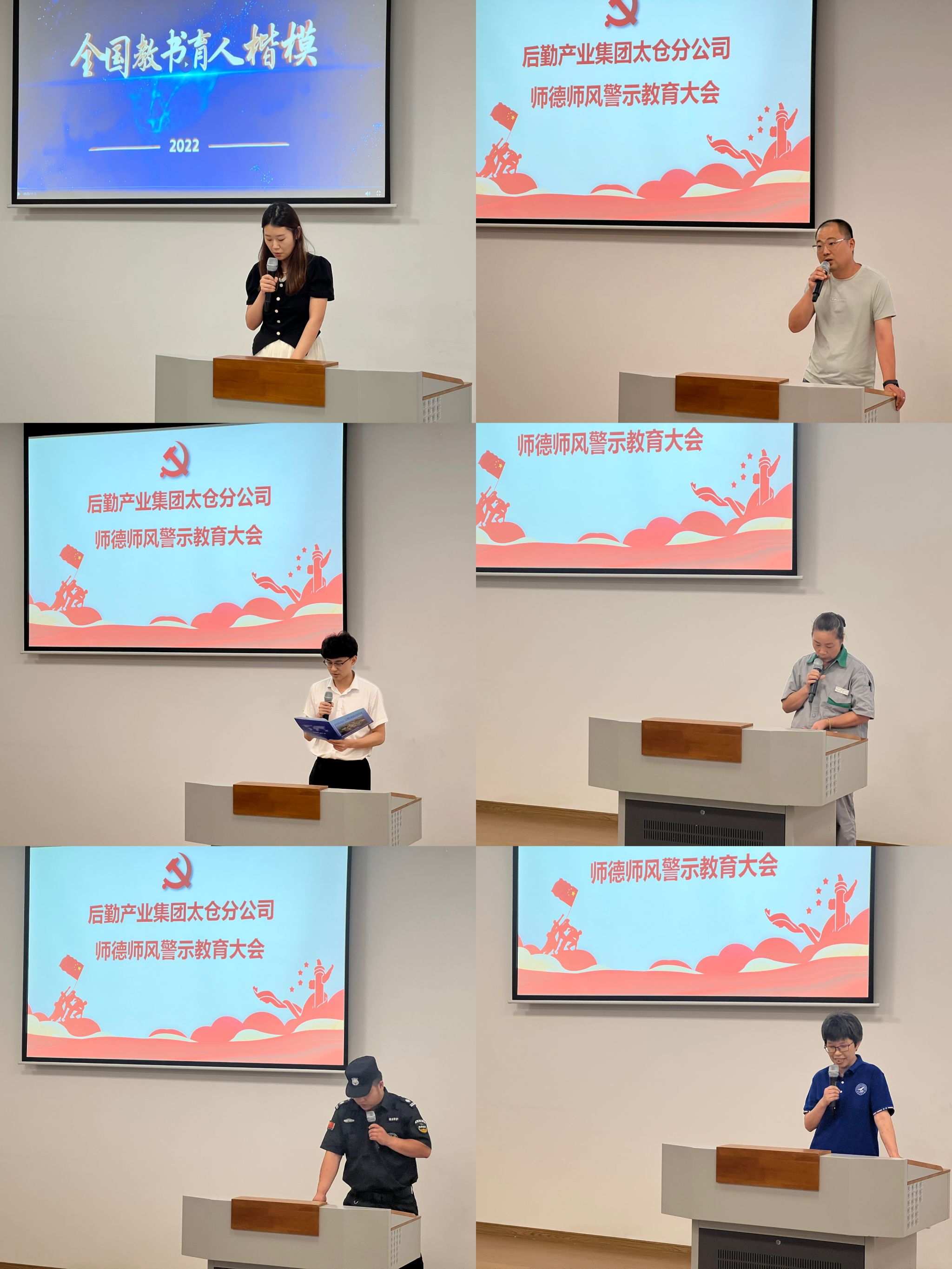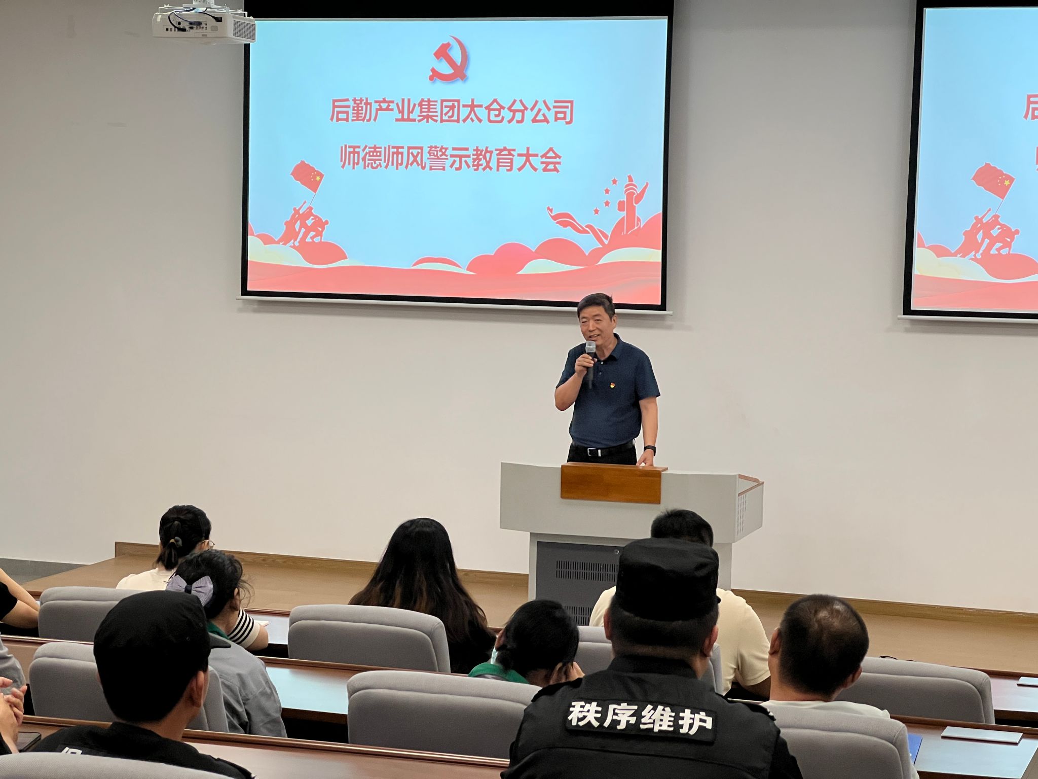 为了准确把握师德师风建设工作面临的新形势新要求,落实学校和集团的工作安排,全员全方位全过程强化师德养成,7月20日下午,后勤产业集团太仓分公司以“弘扬高尚师德,严格正风肃纪”为主题,组织召开师德师风警示教育大会。会议由后勤产业集团党委委员、太仓党支部书记张卫红主持,太仓分公司在岗员工参加会议。
