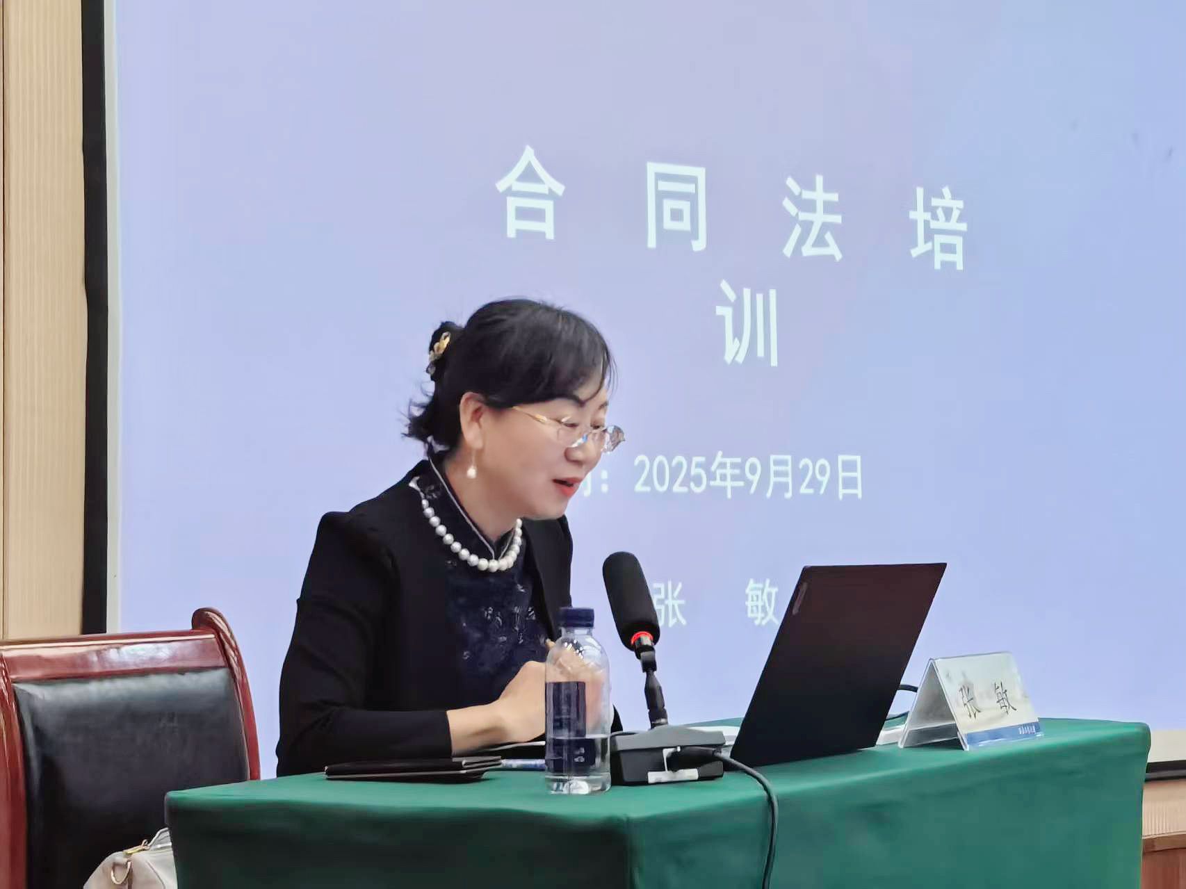 培训分为两个专题环节。在法务知识培训部分,张敏教授以《合同法》为主要内容,围绕合法合规经营、内部控制与风险防范等重点领域,结合自身丰富的学术积淀与实务经验,通过法律条文解读与典型案例剖析,系统阐述了企业在商事活动、运营管理等领域的关键法律风险点与防范策略。在互动环节,张敏教授还针对参训人员提出的具体法律问题进行了专业细致的现场解答。整场授课内容详实、深入浅出,有效提升了参训人员的法律认知水平和风险辨识能力。