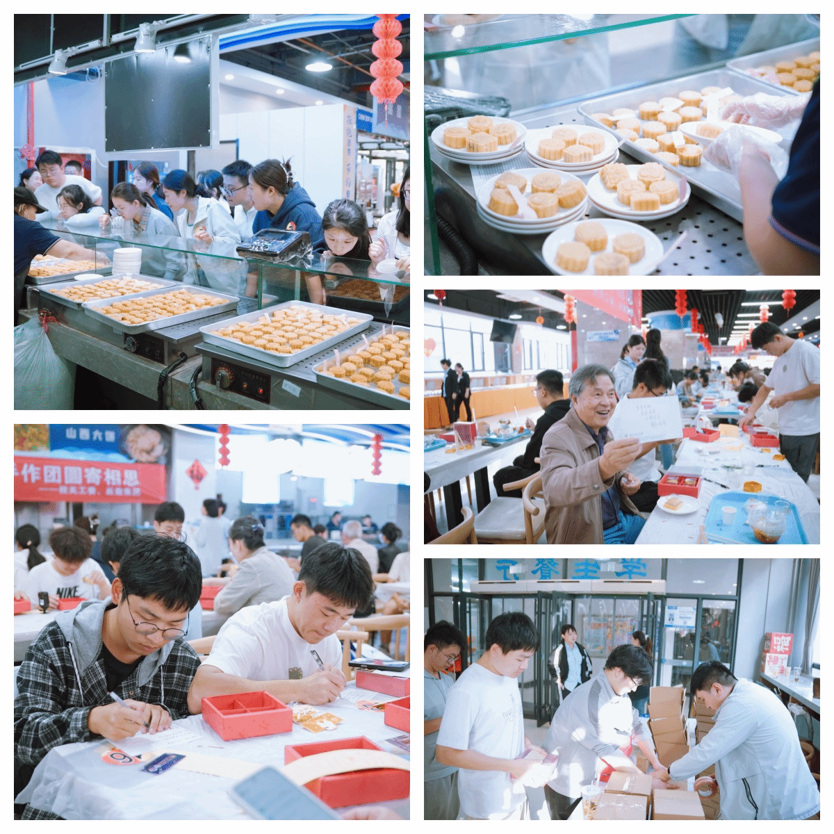 活动现场,面点师傅魏小强为大家详细讲解了月饼的制作流程和技巧。在师傅的悉心指导下,师生携手投入月饼制作。揉面、包馅、压模……一双双巧手在面团与馅料间流转,银发与青春在笑语中交汇。不一会儿,一个个印有“公诚勇毅”和“花好月圆”等图案的月饼便栩栩如生地呈现在眼前。做好的月饼通过现场快递寄往远方的亲人,也表达了对家乡和亲人深切的思念之情。