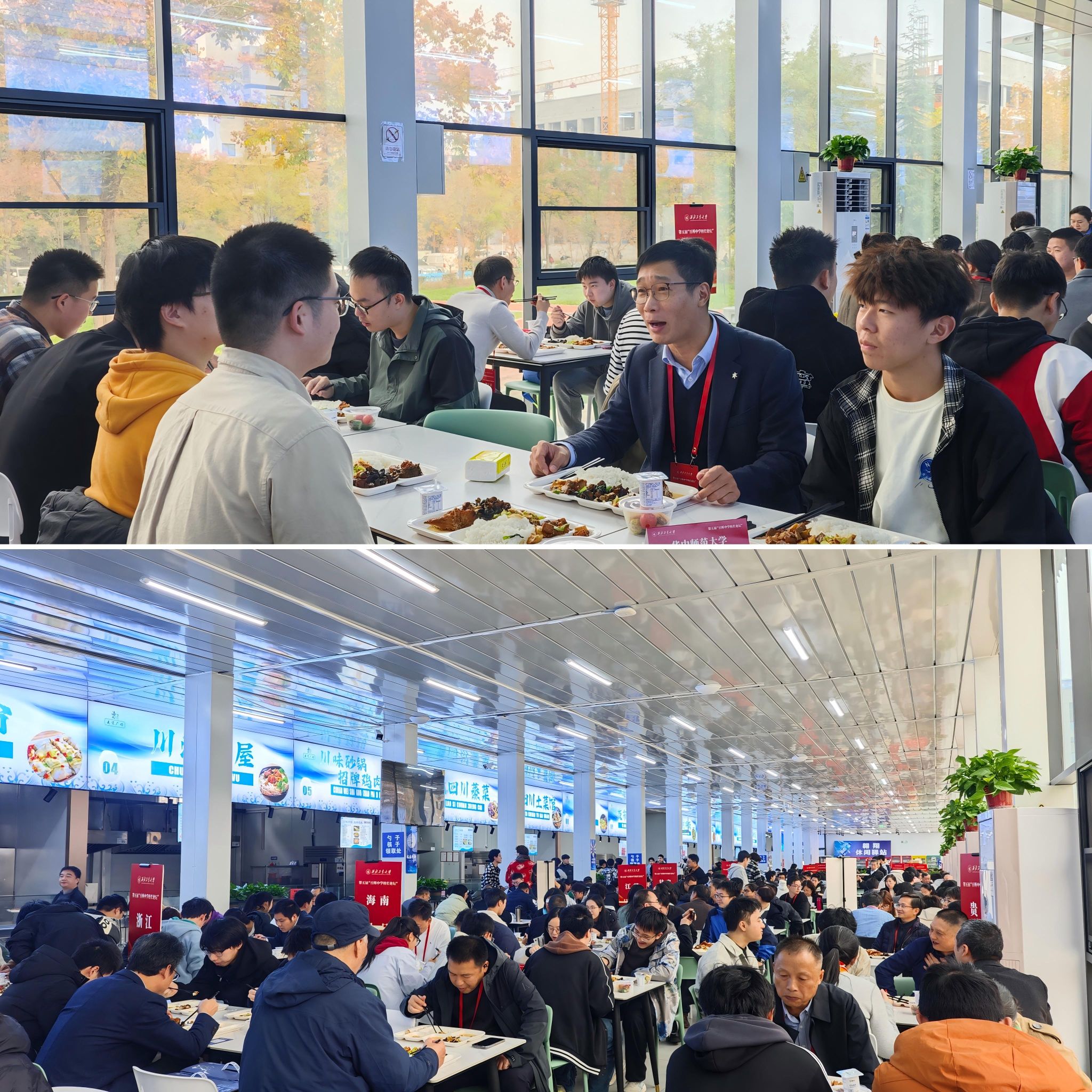 为确保餐饮保障工作得以高效且有序地开展,后勤饮食服务中心以“服务保障为根本、提质增效为关键、师生满意为标尺”的服务宗旨,进行提前筹划与周密部署。在食材采购环节,严格审核供应商资质,对肉类、蔬菜、粮油等主要原料实施全流程管控,落实检验检疫程序,确保食品安全源头可溯。在餐品设计方面,厨师团队精心规划菜单,注重营养均衡与口味多样,并搭配新鲜水果、优质酸奶及免费热汤,既丰富了用餐选择,也为参会代表在初冬时节营造温暖体验。