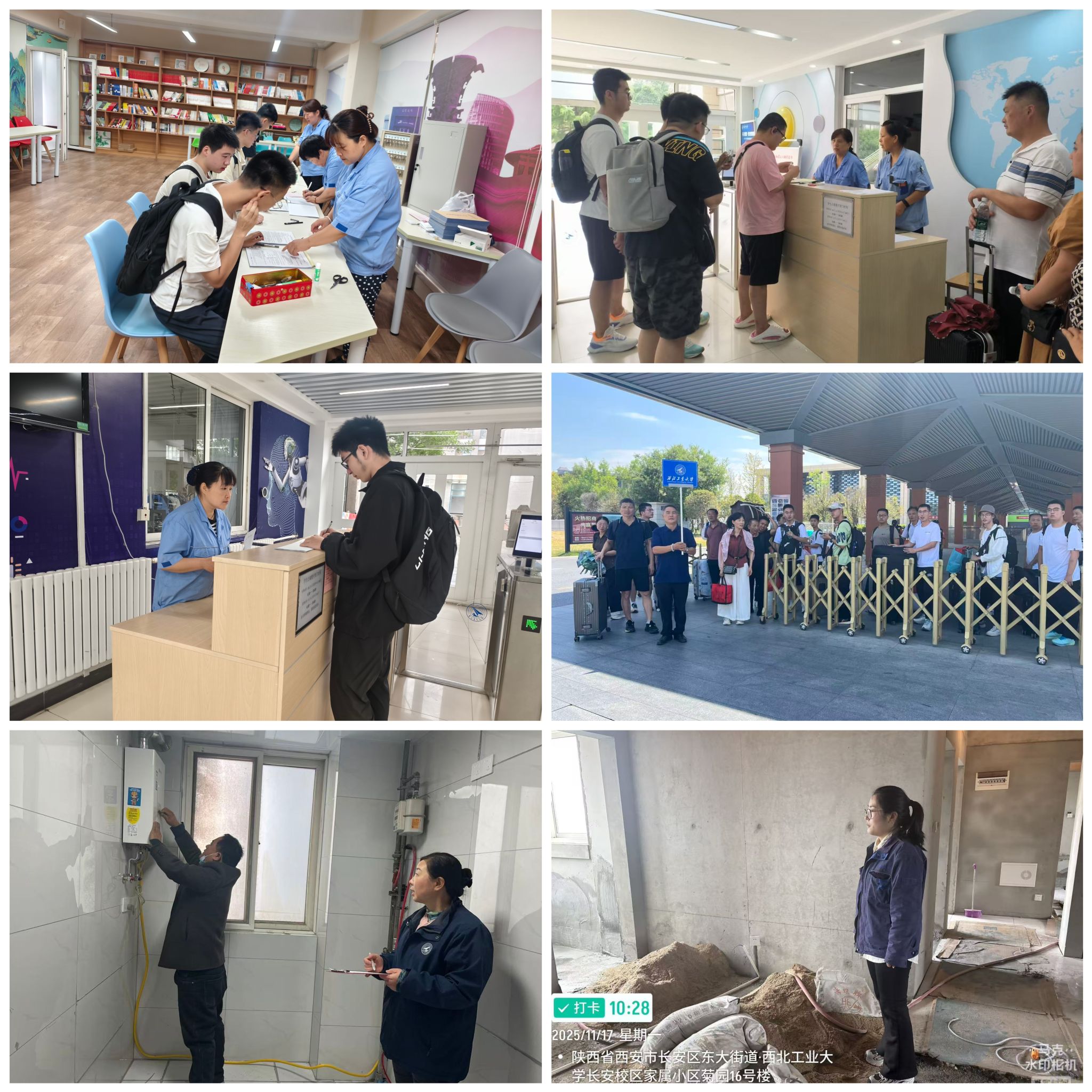 暑期高效完成1000余名临时、提前入住及长安校区回迁学生安置工作;配合国际教育学院完成7批次167名交流师生的住宿接待工作;开学季,在火车站接待服务新生700余名,圆满保障12398名2025级新生完成报到注册与公寓入住手续办理等工作;学生公寓同步开展“旧物流转 爱心传递”活动,吸引了200余名学生参与,流转物品超2000件;全力协助校医院完成12398名新生体检的场地清洁保障,用细致服务筑牢新生入校“第一关”。完成两校区周转公寓装修手续办理107户,二次装修28户,规范押金管理流程,全年办理退装修押金 181户。
