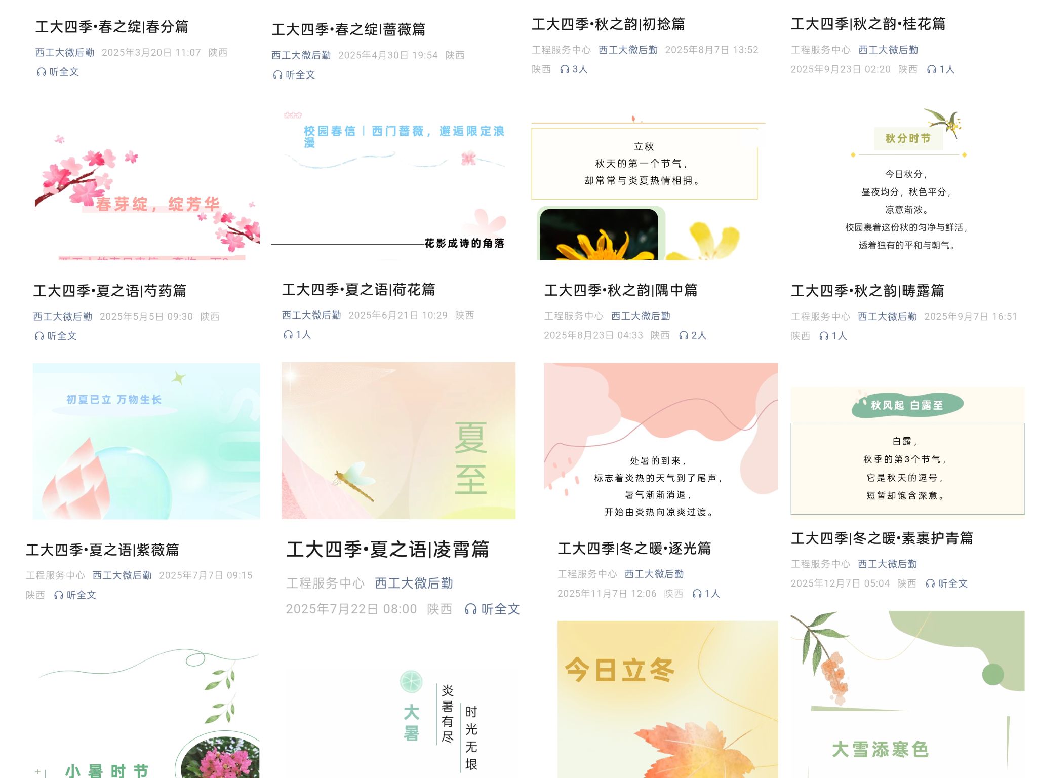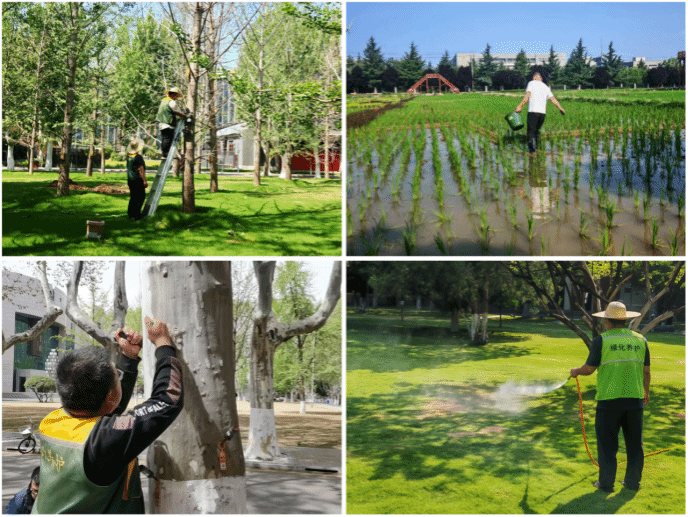 聚焦校园绿化养护各环节,秉持精耕细作理念,多措并举,扎实推进校园环境提升工作。在树木管护方面:完成友谊校区339棵法桐树飞絮试点治理,72棵柿树采果修剪,提升树木养护质效。在增绿补绿与景观提升上,持续改善校园土地裸露问题:友谊校区新增草坪覆盖面积7382m²、麦冬地被1688m²,长安校区新增月季10m²、麦冬地被1200m²、牡丹芍药花苗700株,养护长安校区花海21360m²,专项管护东篱菊苑17亩稻田地,营造特色校园生态景致。同时,面对极端天气快速响应,清理受损树木及断枝残叶,保障校园环境整洁守护师生出行安全。此外,扎实开展绿化安全隐患治理,两校区伐除危树106棵、修剪树木942棵,建立常态化巡查机制,筑牢校园绿化安全防线,为师生营造优美校园环境。“工大四季” 系列线上推文持续更新,累计发布17期,搭配252张校园美景图片,带师生沉浸式赏遍校园四季风光。