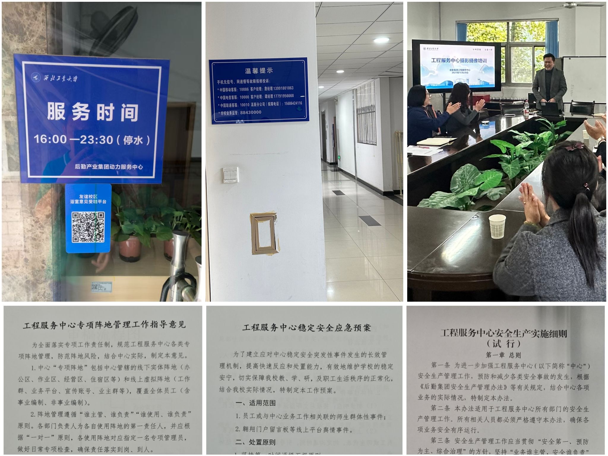 以精细化管理为抓手,持续优化服务流程、提升服务质效。健全制度体系,制定完善《工程服务中心安全管理实施细则(试行)》等多项制度,规范工作流程,推动各项工作有序开展。绿化管理方面,在友谊校区推行分级分类网格化管理模式,把绿化区域划分为四个等级,依据各等级对应的面积标准进一步划分若干网格单元,将绿化养护人员分配至各网格单元开展工作,实现管护责任到人、任务到岗。搭建多元化沟通渠道,在友谊校区浴室张贴二维码,构建“评价—受理—反馈”沟通机制,快速解决学生合理诉求;在长安校区海天苑启真社区张贴温馨提示,提醒师生遇到问题及时反馈,确保诉求第一时间得到处置。
