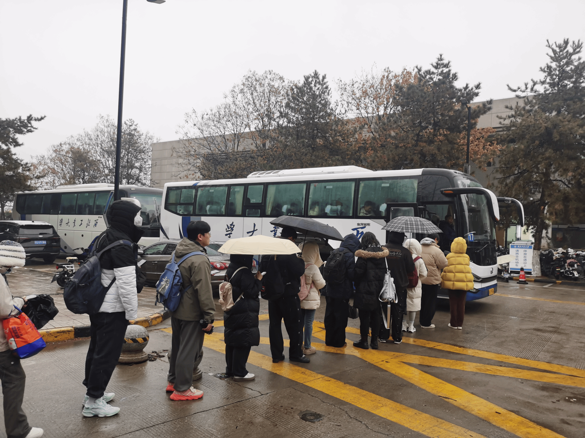 后勤交流服务中心提前调度7辆校车,全力保障跨年晚会工作人员与观演师生在两校区间的顺利通勤,确保了工作人员与观演人员出行顺畅,提供了安全、有序、高效的交通保障。