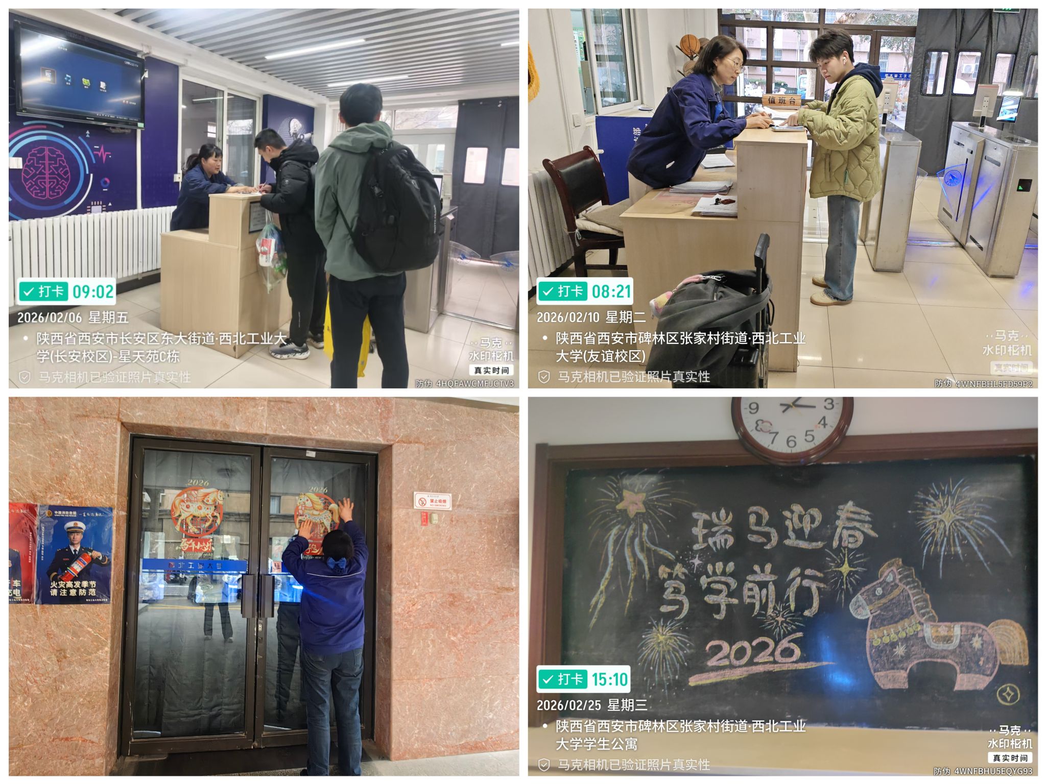 围绕师生假期及开学需求,中心统筹推进环境保洁与服务升级。住宿服务方面,扎实做好两校区公寓学生离校返乡及开学前返校登记工作,同时配合相关部门完成春节氛围营造;针对假期集中住宿点,提前开展卫生清理和设施设备检查报修,保障学生假期住宿服务。